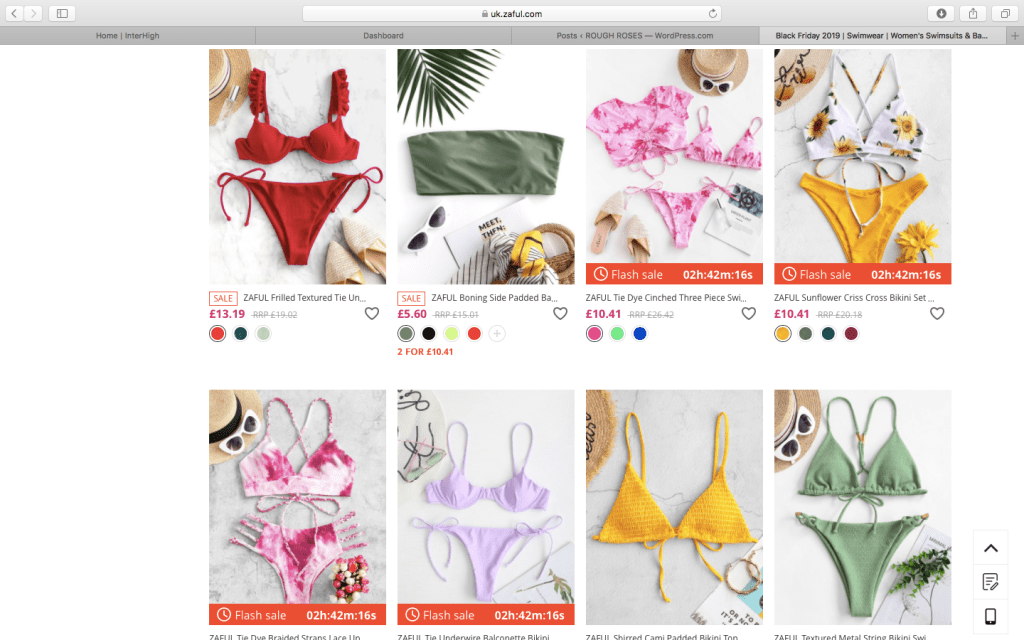 For travellers such like me , the chances that you will need swimwear is so high, I mean how could you travel to the Bahamas, Maldives, Tahiti without a cute bikini ?… thats right you just couldn’t. Finding cute bikinis that you will feel comfortable in with a great price is so hard to find. It took me weeks and weeks of looking. You have the top brands such as Triangl , Frankies Bikinis etc, all of their bikinis ranging into the three figures. I have to admit though , I love Frankies Bikinis. They are great quality and their tie dye designs have me fallings in love! But prices like that limit you to only one outfit. So I kept looking and looking until I discovered Zaful. https://uk.zaful.com/swimwear-e_14/?lkid=485340&gclid=EAIaIQobChMIhPXi_8WZ5gIVWeDtCh1rMgjwEAAYASAAEgI__vD_BwE